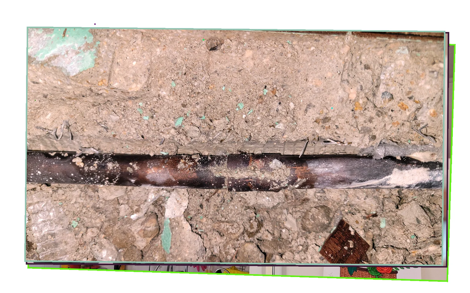 전 구역을 스캔한 결과 냉수관 이음부의 균열 에서 지속적으로 물이 새고 있음을 확인했습니다.