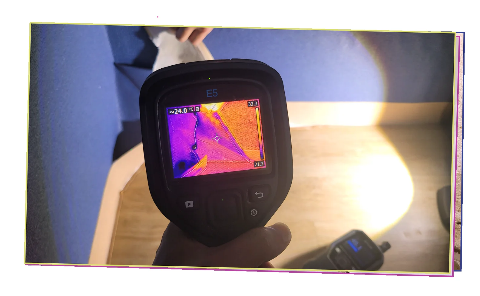 전 구역을 스캔한 결과 급수관 연결부위의 미세한 틈 에서 지속적으로 물이 새고 있음을 확인했습니다.