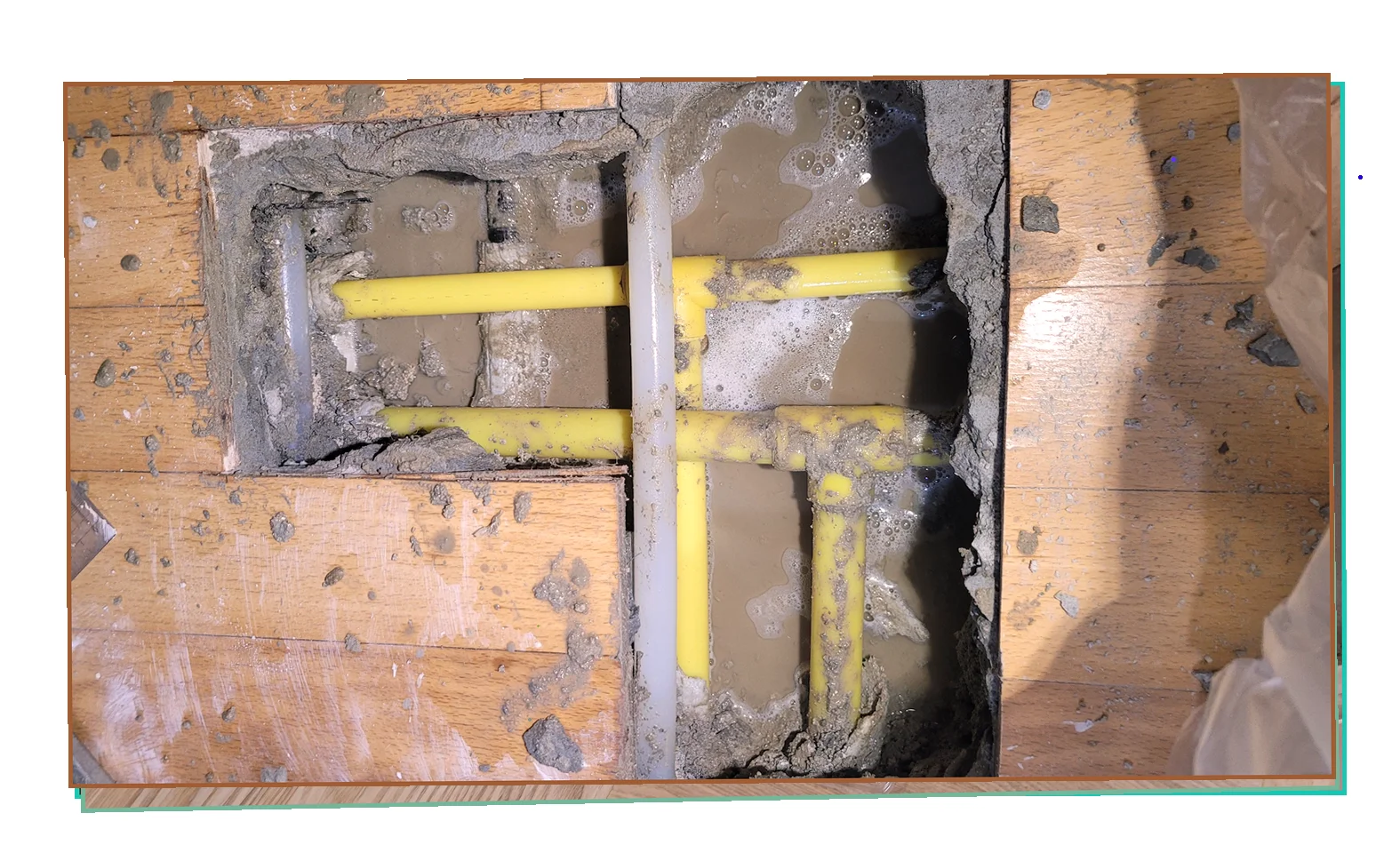 내부 배관을 점검한 결과 냉수관 이음부의 균열 에서 누수가 시작되었음을 확인했습니다.